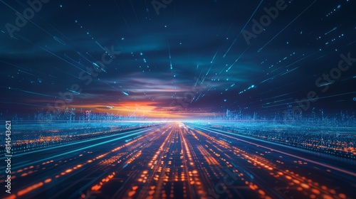 Obraz premium There is a straight line road through an empty desert, an invitation to...