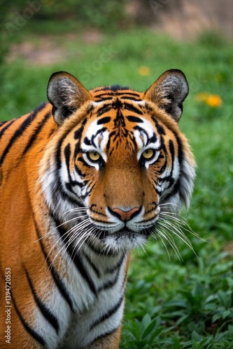 © haiqiang, Fototapeta premium there is a tiger that is walking in the grass