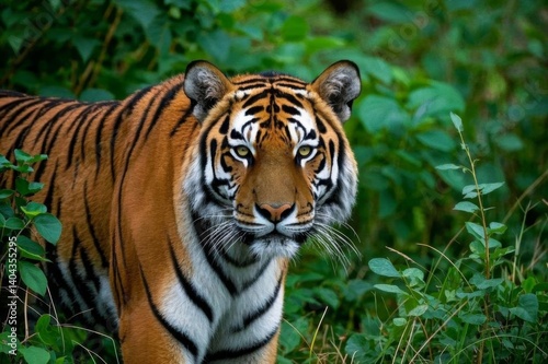 © haiqiang, Fototapeta premium there is a tiger that is walking through the grass