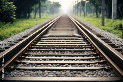 © haiqiang, Obraz premium there is a train track that is going down the middle of the woods