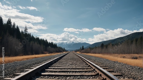 © haiqiang, Fototapeta premium there is a train track that is going through the woods