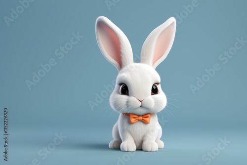 © haiqiang, Fototapeta premium there is a white rabbit with a bow tie sitting on a blue surface