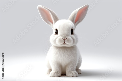 © haiqiang, Fototapeta premium there is a white rabbit with pink ears sitting on a white surface