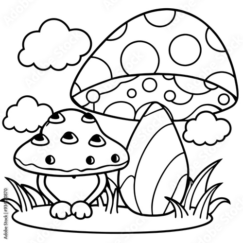 © Anisa283, Fototapeta premium There mushroom and frog rain Coloring page