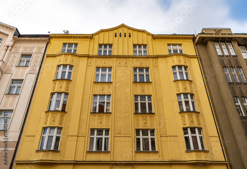 © Dmitry Kovalchuk, Fototapeta premium There stands a large yellow building featuring a plethora of windows