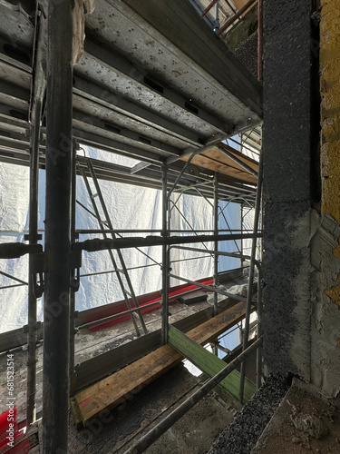 © CesareFerrari, Fototapeta premium Thermal and acoustic insulation materials like polystyrene foam, mineral wool and polyurethane foam, applied outside a residential building.