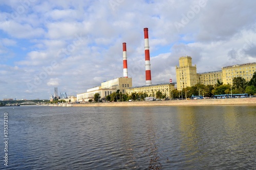 Naklejka premium Thermal power Plant on the embankment of the Moscow river