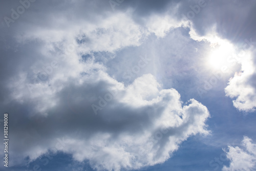 © Amornrat, Obraz premium Thick cloud cover blue sky, little shade of sunlight