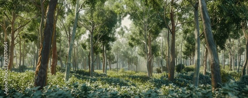 Fototapeta premium Thick eucalyptus grove with aromatic leaves, 4K hyperrealistic photo
