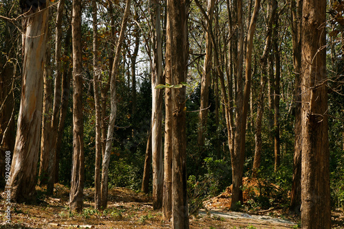 Obraz premium thick forest in kerala india with teak and eucalyptus trees