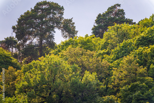 © Dmitrii Potashkin, Fototapeta premium Thick green forest on the hillside.