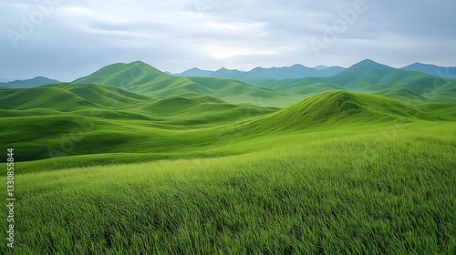 Naklejka premium Thick, lush grass blankets the earth, creating a comforting and untouched paradise. Each blade stands tall, swaying in harmony, as if whispering secrets to the open sky