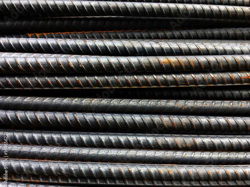 © neosiam, Fototapeta premium Thick rusty rebar rods metallic