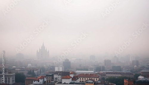 Fototapeta premium Thick smog obscures Milan's skyline, a hazy grey blanket , haze, milan