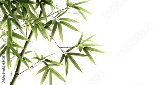 Obraz premium Thick-stemmed bamboo branch with leaves on white background