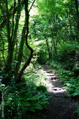 Fototapeta premium thick wild forest and path in the gleaming sunlight