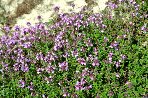 Naklejka premium Thickets of the blossoming thyme creeping (a thyme ordinary) (Thymus...