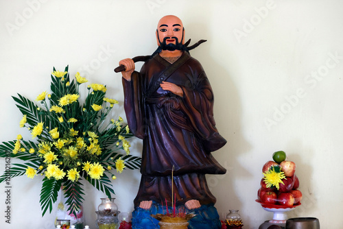 © Godong Photo, Fototapeta premium Thien Truc buddhist pagoda. Bodhidharma Daruma (5th - 6th century ) was a Indian Buddhist monk, and is traditionally credited as the transmitter of Zen. Bac Lieu. Vietnam. .