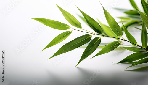 Fototapeta premium Thin and elegant bamboo leaves, photographed with sharp focus on a white...