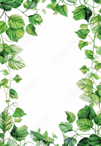 © Gro, Fototapeta premium Thin Border of Vines and Leaves with White Background in Center