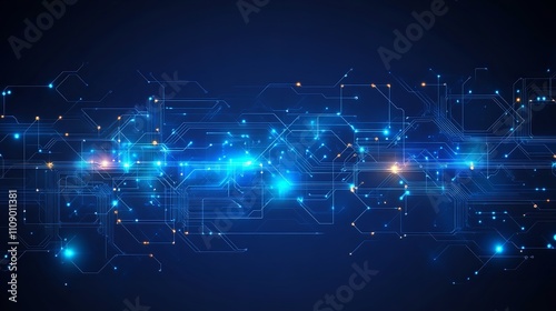 Obraz premium Thin Circuit Trace Lines in Blue on a Dark Technology Background