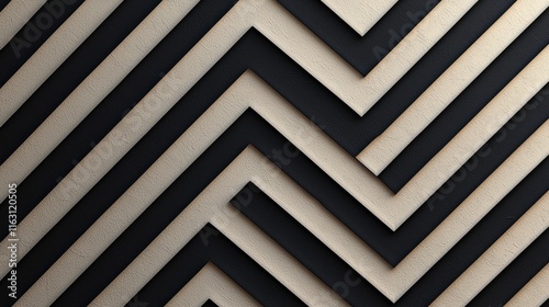 © Mana, Obraz premium Thin Diagonal Stripes in Black and Beige Pattern