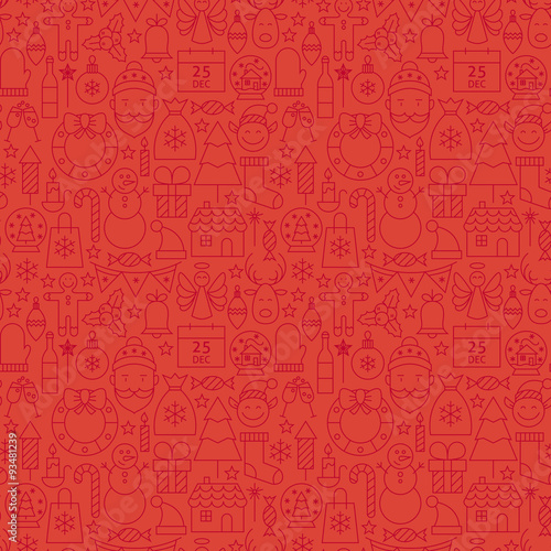 Fototapeta premium Thin Line Holiday Christmas Red Seamless Pattern