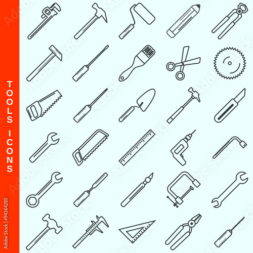 © Ulvur, Naklejka premium Thin line tools and construction equipment vector icons set