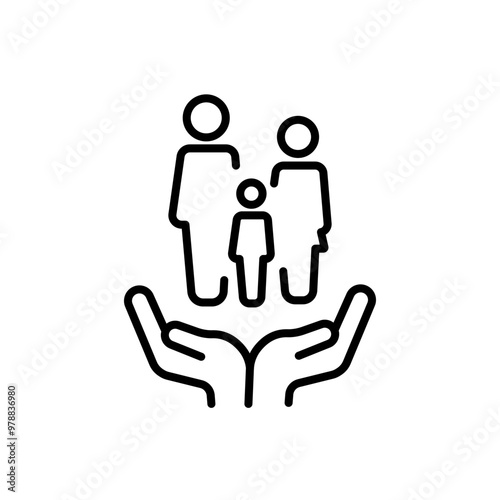 © Olga, Fototapeta premium Thin Outline Icon Two Hands Holding or Hugging Group People Symbol or Family Line Sign Group Life Insurance, Caring Hands Family Medicine Vector Isolated Pictogram on White Background Editable Stroke.