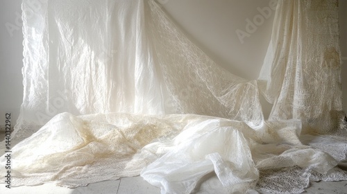 Obraz premium Thin, sheer fabrics layered to create a dreamy, transparent textile composition