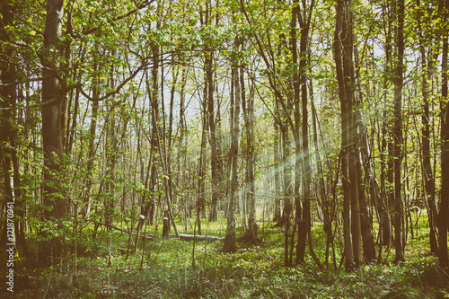 Fototapeta premium Thin trees in a wood in the Chilterns
