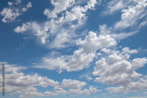 © Anat art, Obraz premium Thin White Clouds Drift Across a Pastel Blue Summer Sky in a Serene Afternoon Atmosphere Generative AI