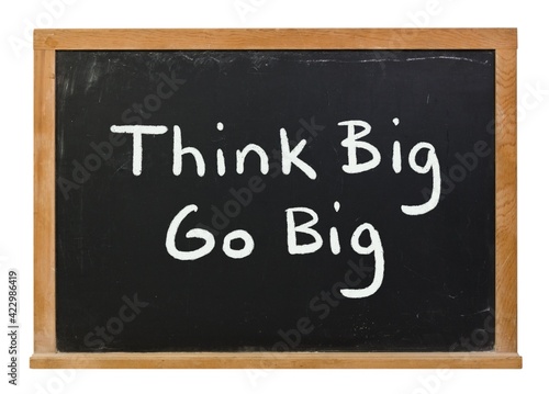 Obraz premium Think Big Go Big written in white chalk on a black chalkboard isolated on white