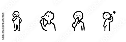 Obraz premium Thinking And Contemplation Gesture Line Icon Set In Doodle Style. Decision Making, Curiosity, And Problem Solving Outline Sketch Collection. Hand Drawn Isolated Vector Illustration