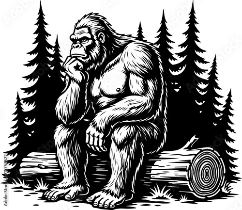 Obraz premium Thinking Bigfoot Forest Silhouette Vector