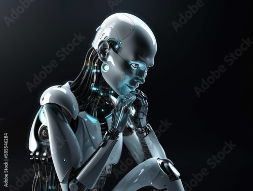 Naklejka premium Thinking cyborg. Extremely detailed futuristic robot or cyborg head in...