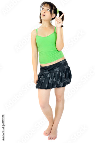 © Dzimitry Valiushka, Fototapeta premium thinking young woman, isolated on white