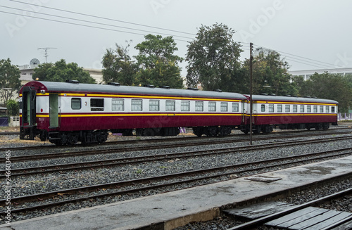 © trainman111, Fototapeta premium Thirst class passenger car is parking in the yard.