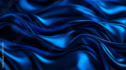 © Nima, Obraz premium This abstract background features flowing waves of liquid glass in a deep blue hue, creating a sense of movement and depth. It symbolizes fluidity, transformation, and the ethereal nature of reality.