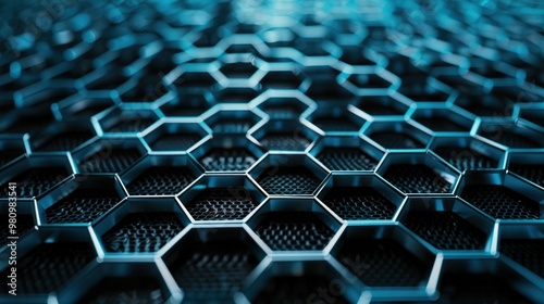 Naklejka premium This abstract technology background showcases a mesh of digital hexagons and...