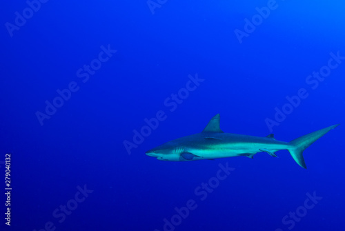 Fototapeta premium This apex predator is a reef shark shot in the wild in its natural habitat. The impressive creature lives in the warm tropical waters of the Cayman Islands.