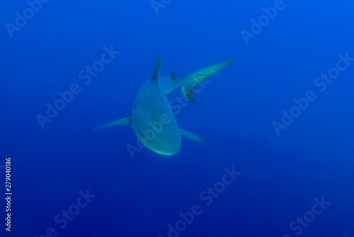 Fototapeta premium This apex predator is a reef shark shot in the wild in its natural habitat. The impressive creature lives in the warm tropical waters of the Cayman Islands.
