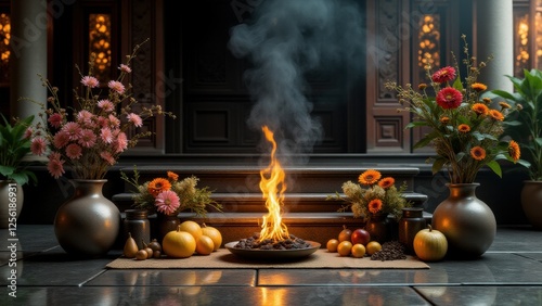 © ArcanaVisio, Fototapeta premium This arrangement reflects Buddhist ceremonies, symbolizing gratitude and spiritual harmony.