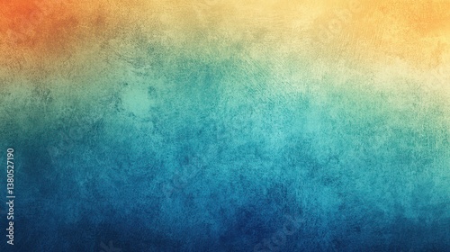 Fototapeta premium This artwork displays a colorful gradient transitioning from warm orange and yellow hues to cool blue shades. The textured surface creates a unique visual depth