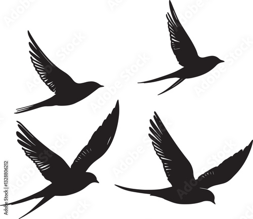 © Niamulis, Obraz premium This artwork is digitally enhanced using AI and manually edited for quality.Flying Bird Silhouettes - Minimalist Black and White Art.