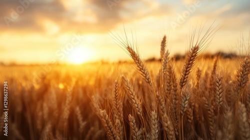 Obraz premium This beautiful image features a vast wheat field glowing warmly in the dusk...