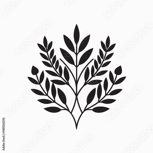 Fototapeta premium This black and white laurel wreath vector illustration features a floral leaf pattern, a timeless nature-inspired design