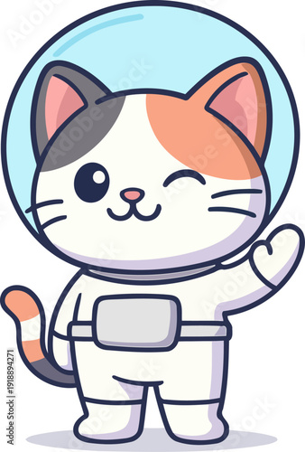 © Xiaoling, Obraz premium This charming illustration features a cute cat dressed as an astronaut, complete with a bubble helmet and playful expression, making it perfect for space-themed designs.