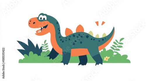 Fototapeta premium This charming prehistoric Trex art blends flat style with lively textures,...