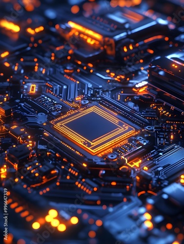© OllK, Obraz premium This Circuit Board Glows With Technological Power.